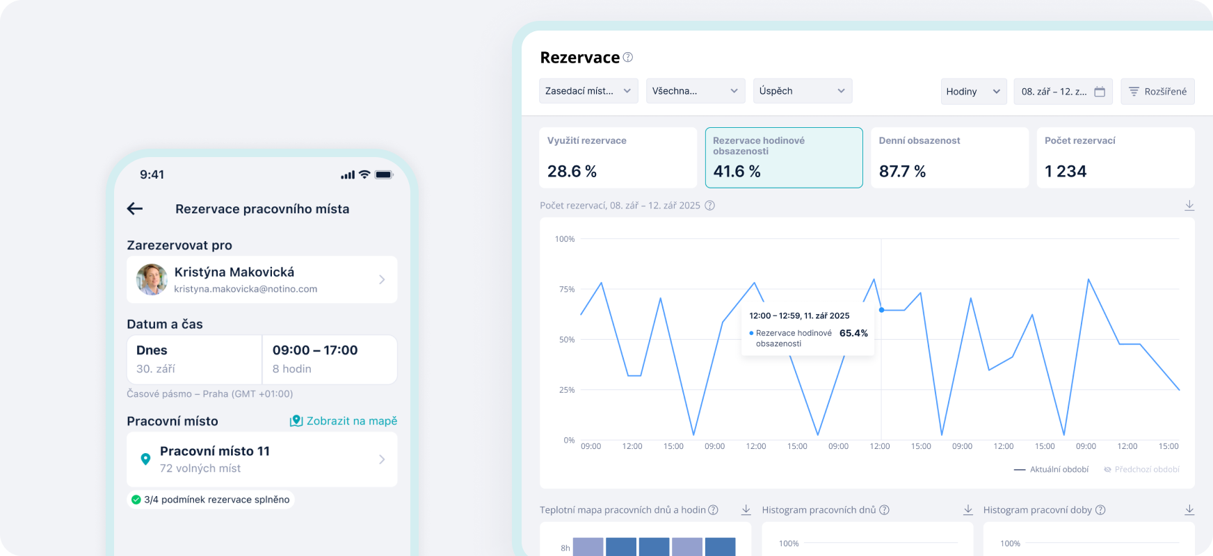 Spaceti collaborated with Notino during a period of rapid company growth, when Notino was preparing to move into a new headquarters in Brno. The cooperation began in late 2022, with Spaceti implemented in Notino’s existing offices to support hybrid work, manage capacity, and collect real workplace data. These insights played a key role in shaping the design and layout of the new 12,776 m² headquarters.