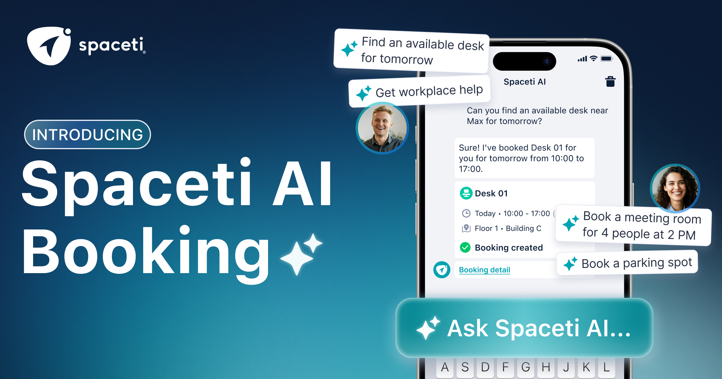We’re excited to introduce the newest feature in the Spaceti AI ecosystem: Spaceti AI Booking — an intelligent and intuitive way to book workspaces with AI, simply by describing what you need.