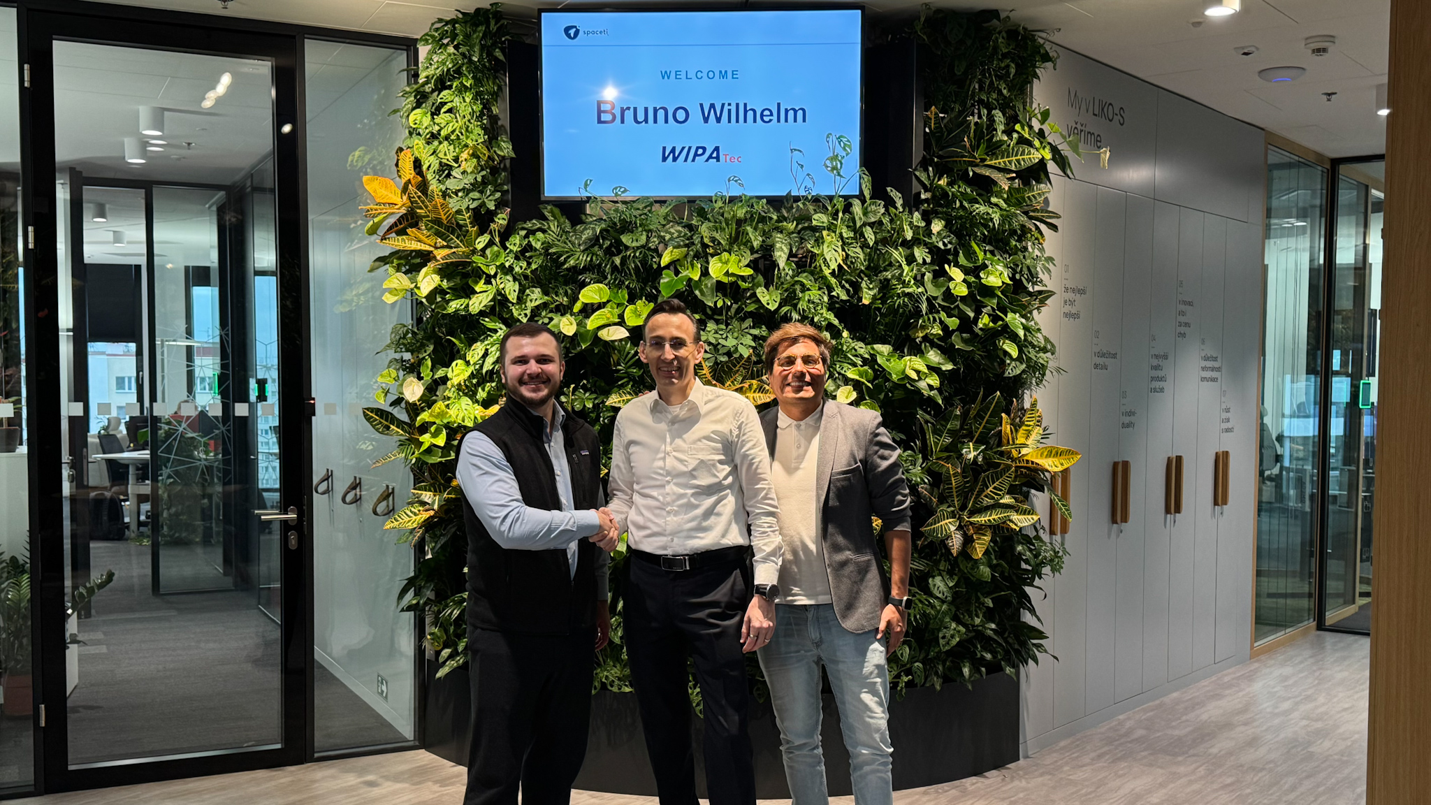 Max Verteletskyi, Bruno Wilhelm, and Jorge Gutierrez at Spaceti's office in Prague